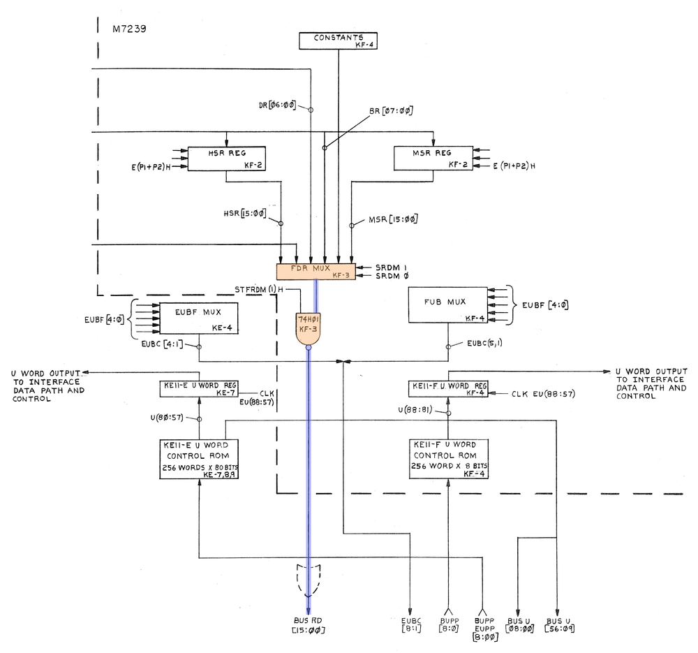 The only possibilities are the bus drivers, FDR Mux, HSR Reg or MSR Reg. Initially, I spent a considerable amount of time attempting to track bit 7 throughout the microcode routine, unfortunately it was just too complex to track it without building a simulation, and I did not have time for that.