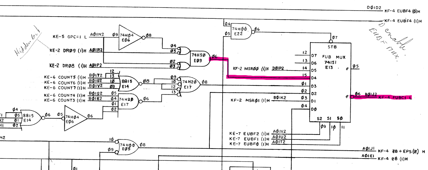 The first thing to check was the BUT (Branch Microcode Test). After a couple minutes of familiarising myself with BUT hardware used in the FP board I was able to track the the BUT MUX and BUT flags.